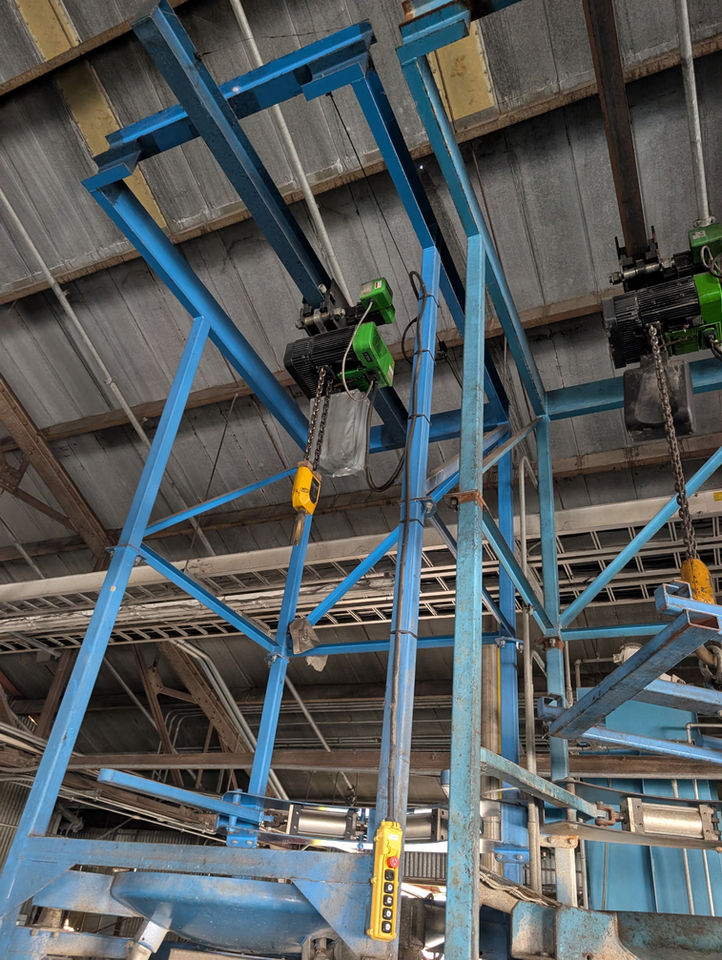 Includes: structural frames, electric chain hoists, bag support frames, discharge hoppers.